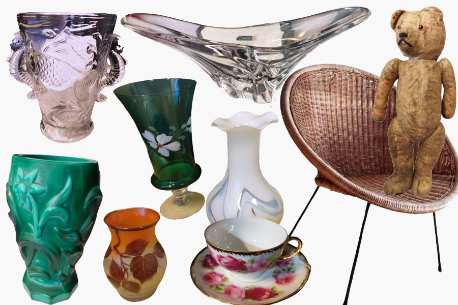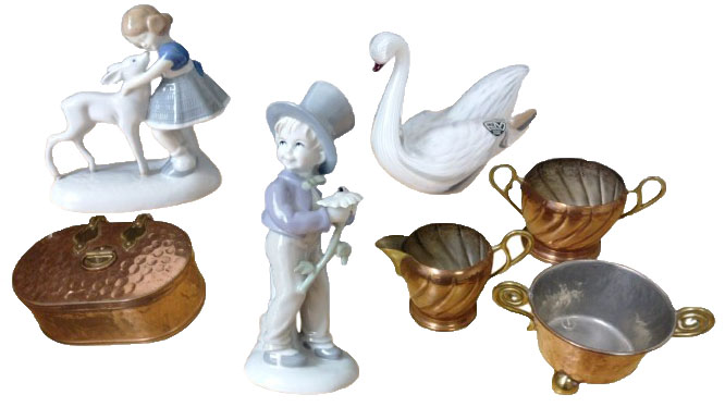 Unser Sortiment: Kleidung, Schmuck, Schuhe und Taschen, Porzellan, Glas, Kupfer, Alpaka, Messing-Geschirr, Ziergegenstände, Vasen, usw.